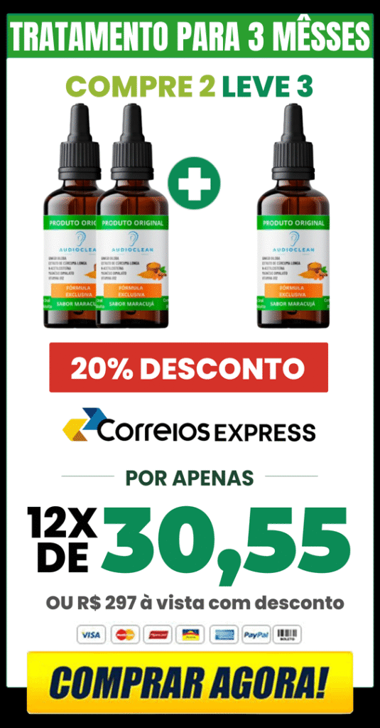O Audioclean tem ajudado milhares de pessoas a eliminar zumbidos e chiados nos ouvidos. Com sua fórmula importada, você sentirá os resultados já nas primeiras semanas. Experimente e recupere sua qualidade de vida!